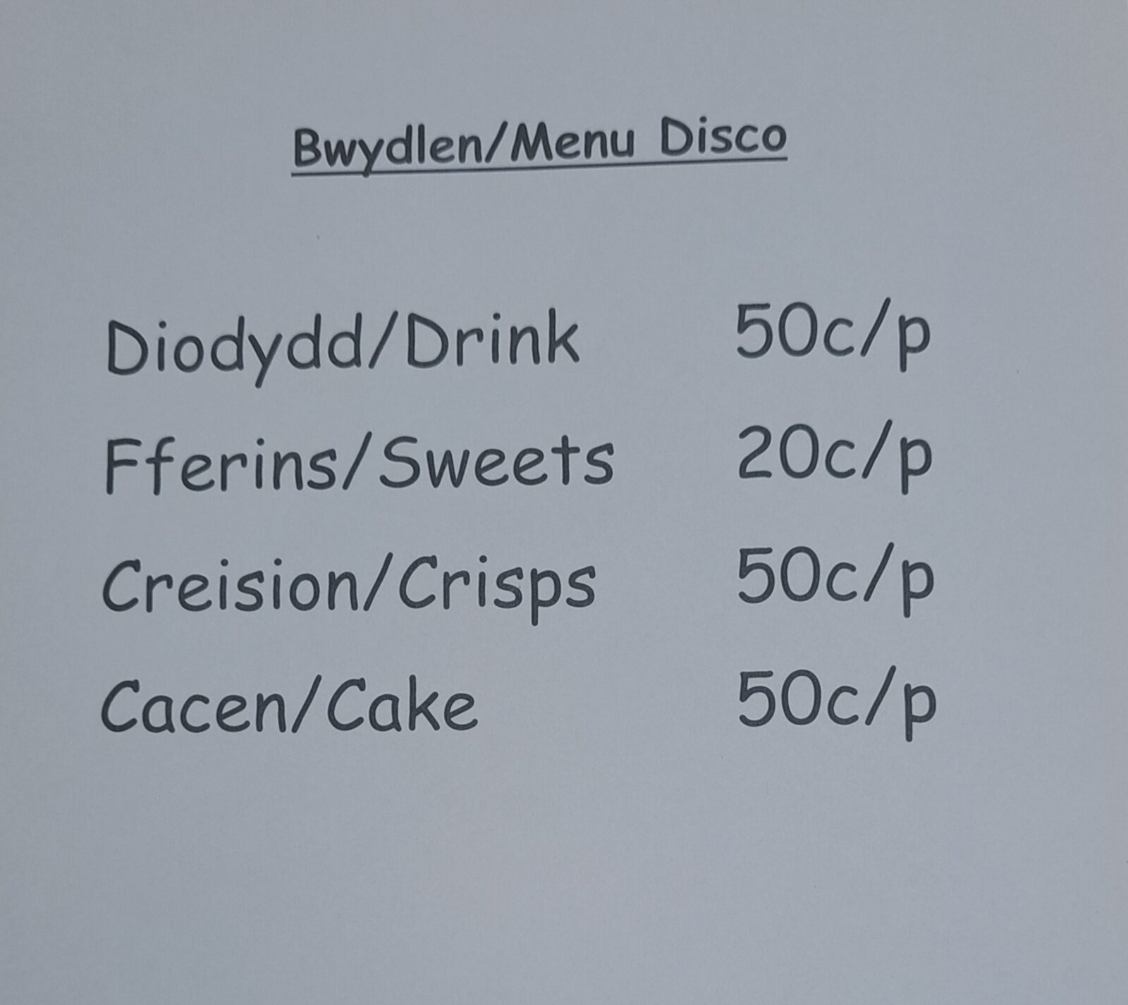 Autumn Disco – This Friday 24th October at Ysgol Cynddelw 1.30 – 3pm. £1 per child, fancy dress if desired. Snacks available to buy, please see attached price list.
