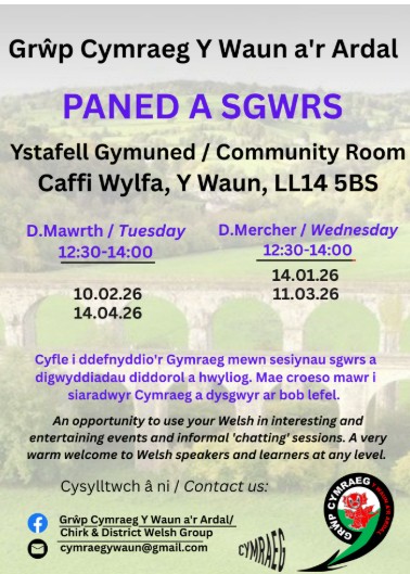 Here are some local events and activities coming up if you would like to have a paned and practise your Welsh…